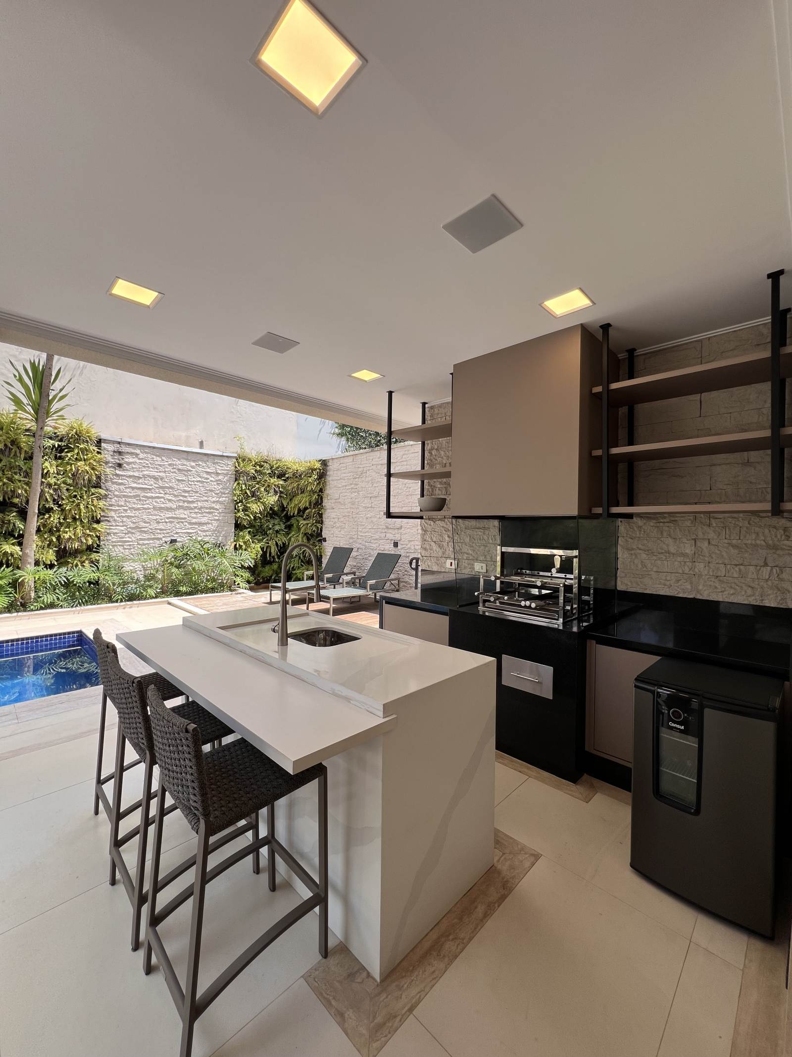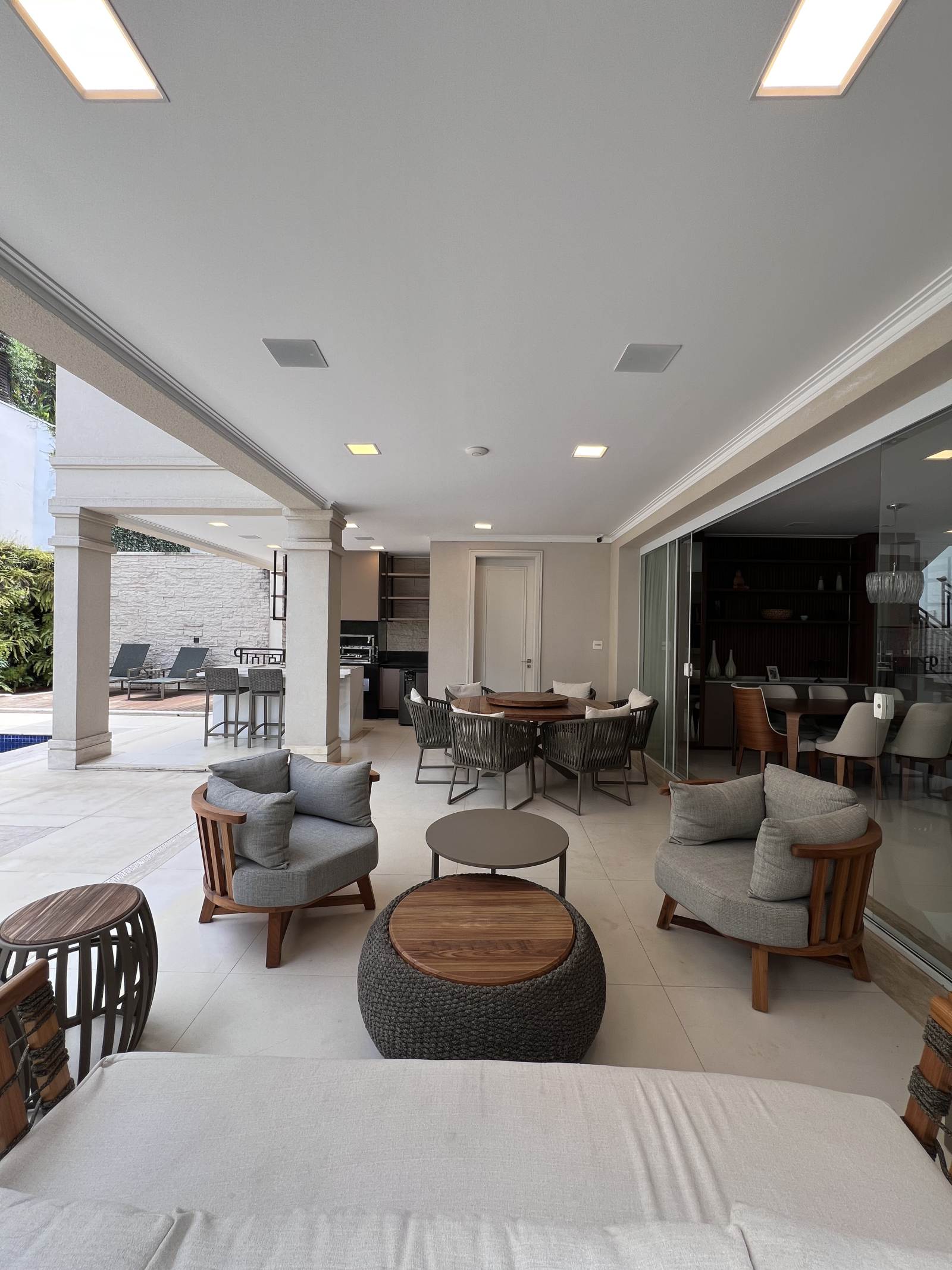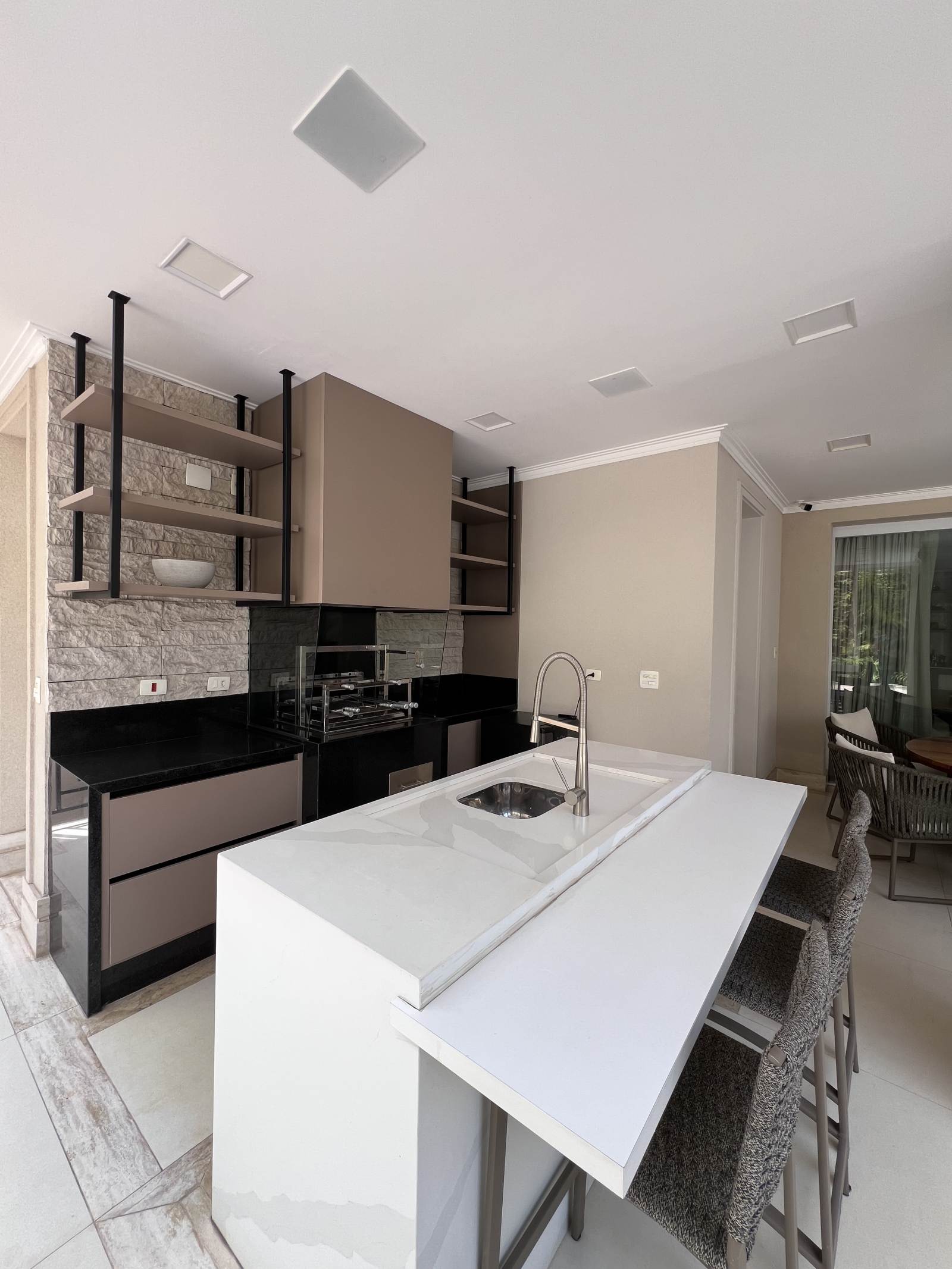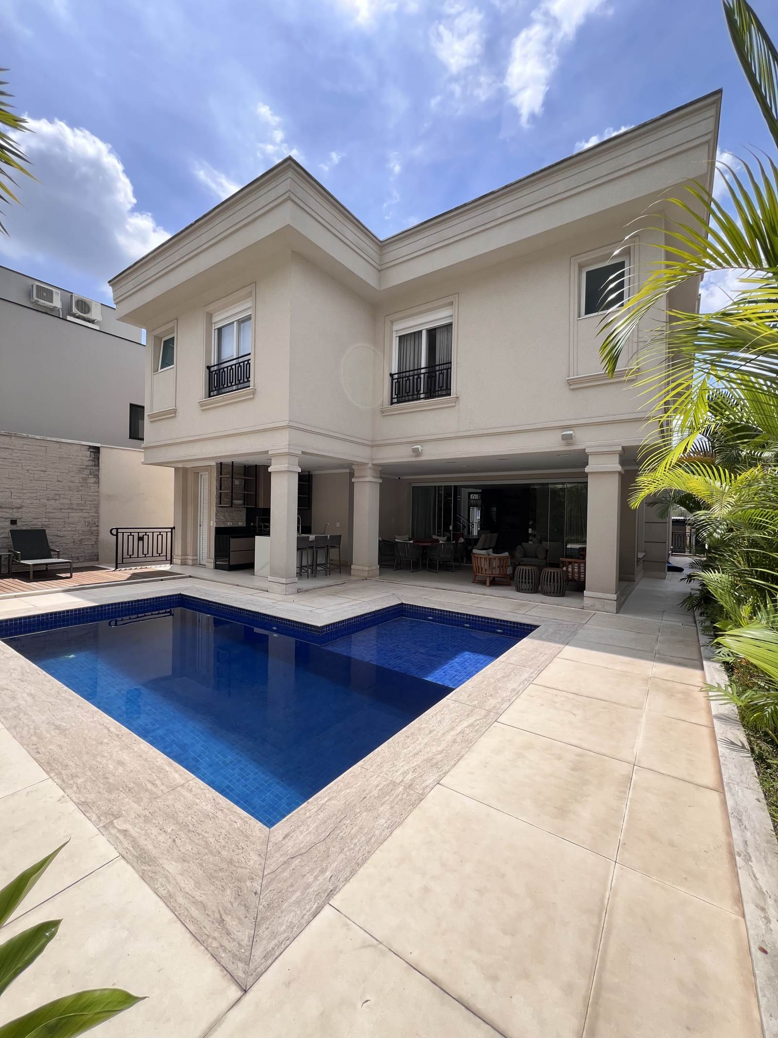 Linda casa com 420m2 de terreno e 442m2 de área construída, 4 amplas suítes, living para 3 ambientes, piscina aquecida com prainha, área gourmet integrando os ambientes, pé direito duplo, sala íntima, escritório, lareira, lavabo, suíte máster com dois closet, ar condicionado, dependência de funcionários e 6 vagas de garagem.