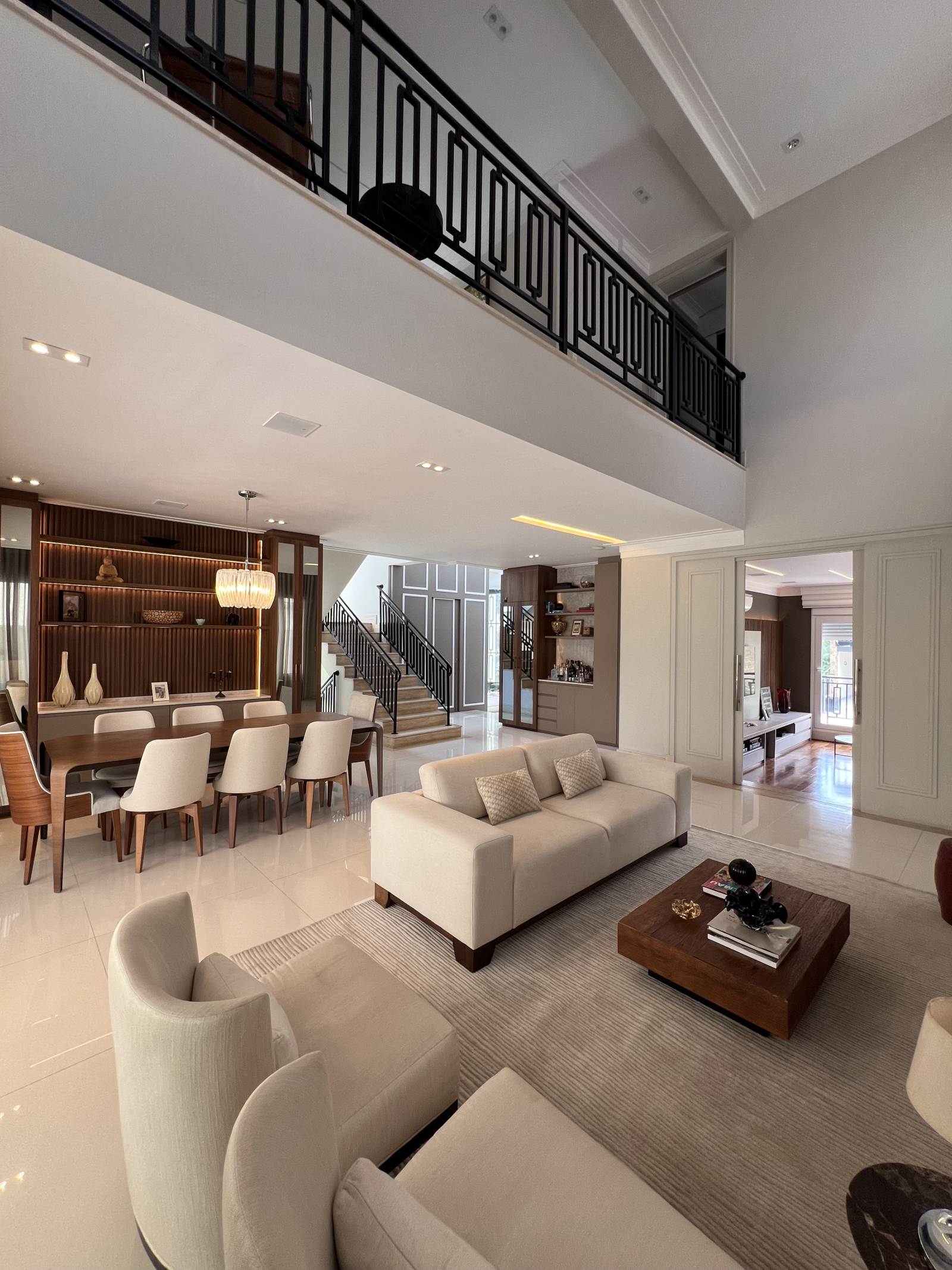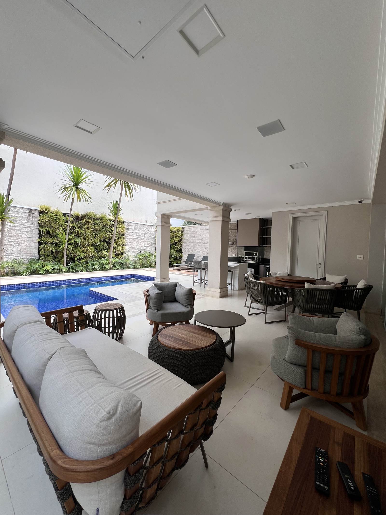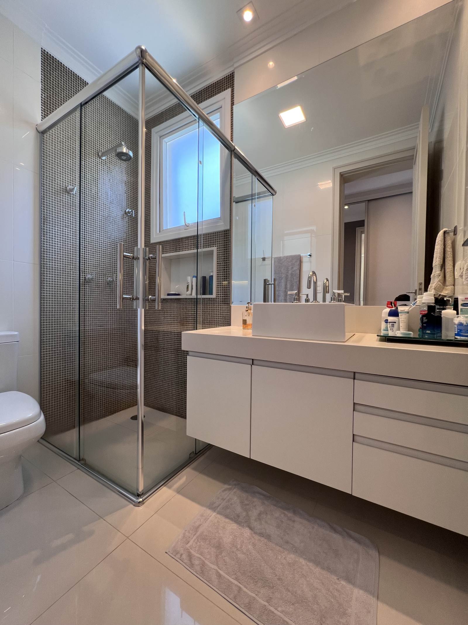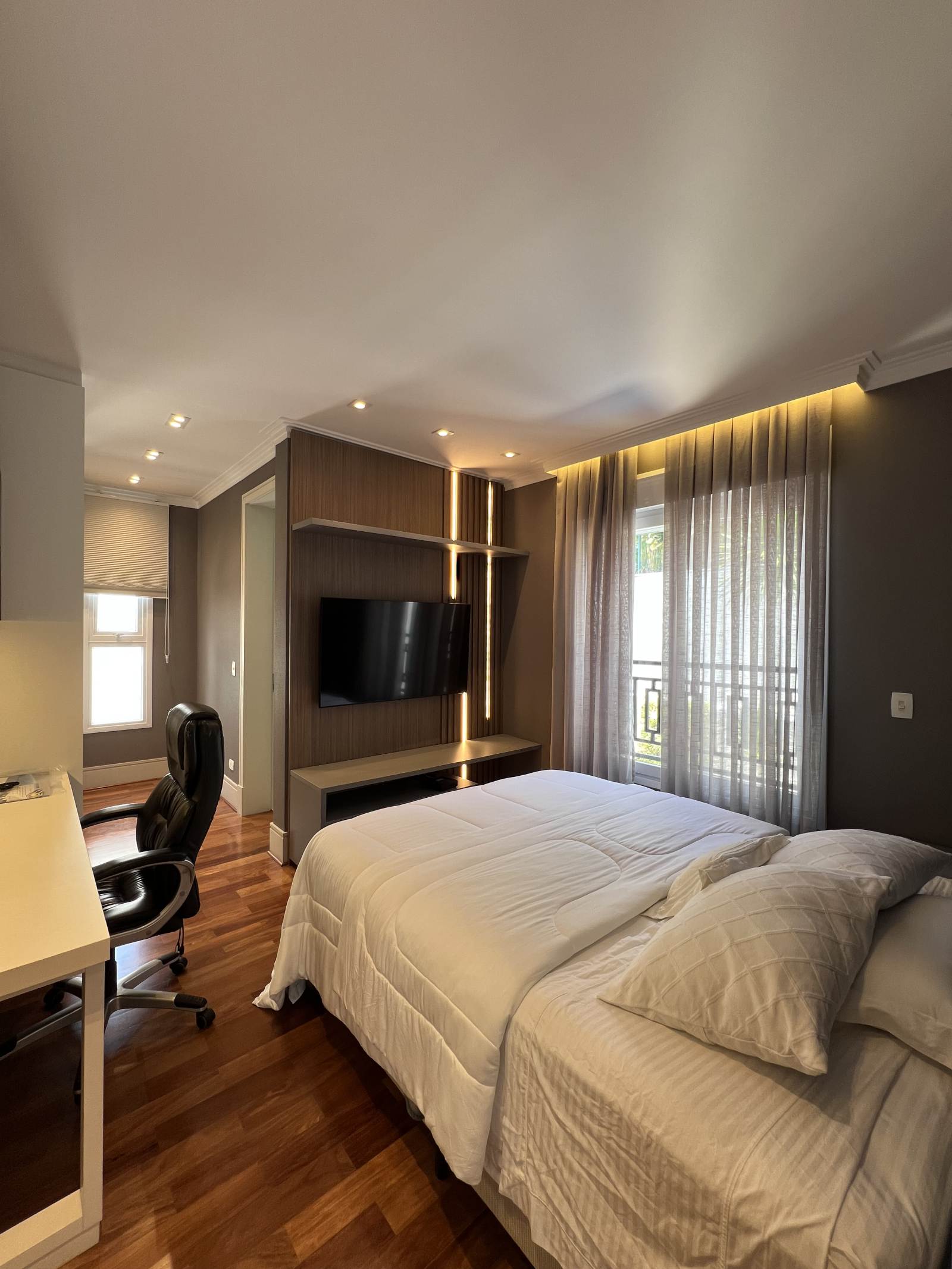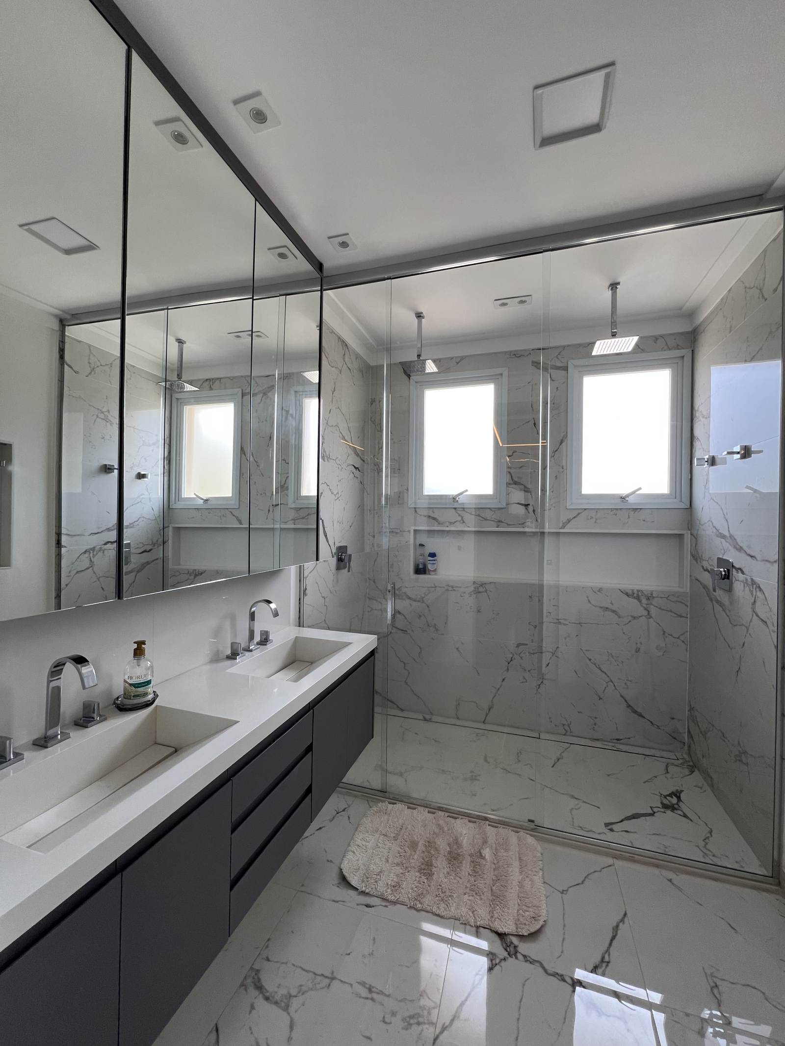 Linda casa com 420m2 de terreno e 442m2 de área construída, 4 amplas suítes, living para 3 ambientes, piscina aquecida com prainha, área gourmet integrando os ambientes, pé direito duplo, sala íntima, escritório, lareira, lavabo, suíte máster com dois closet, ar condicionado, dependência de funcionários e 6 vagas de garagem.