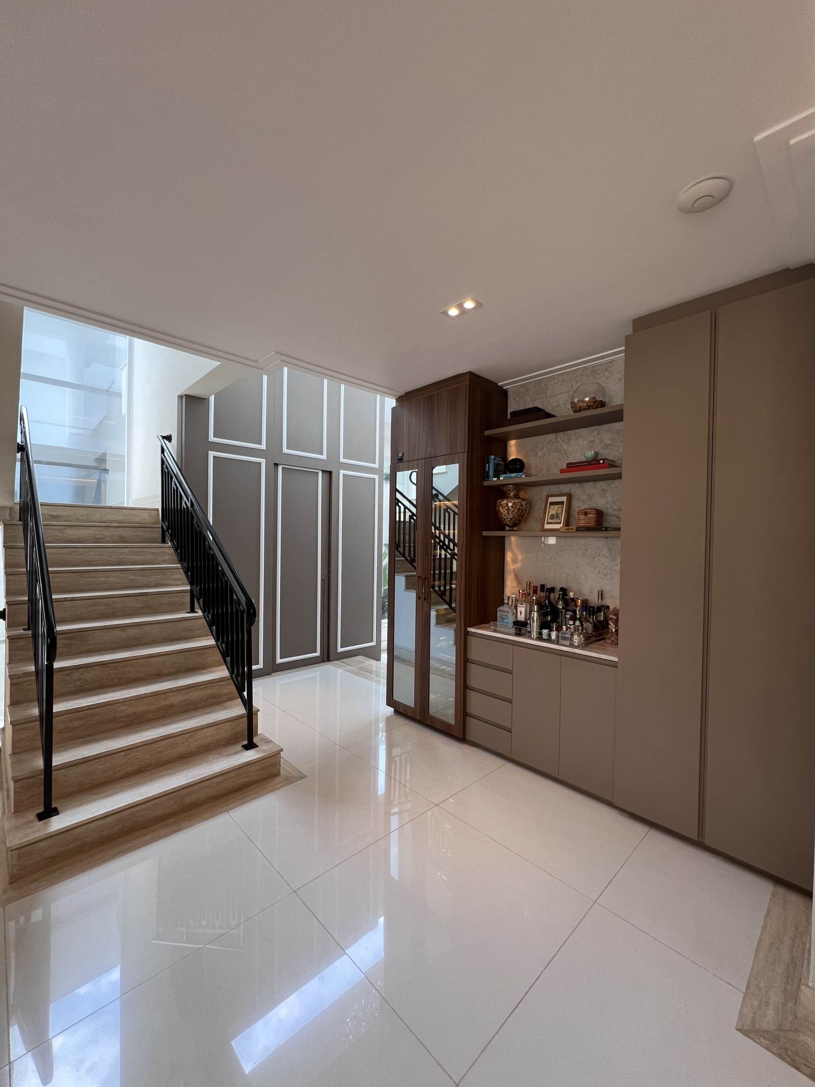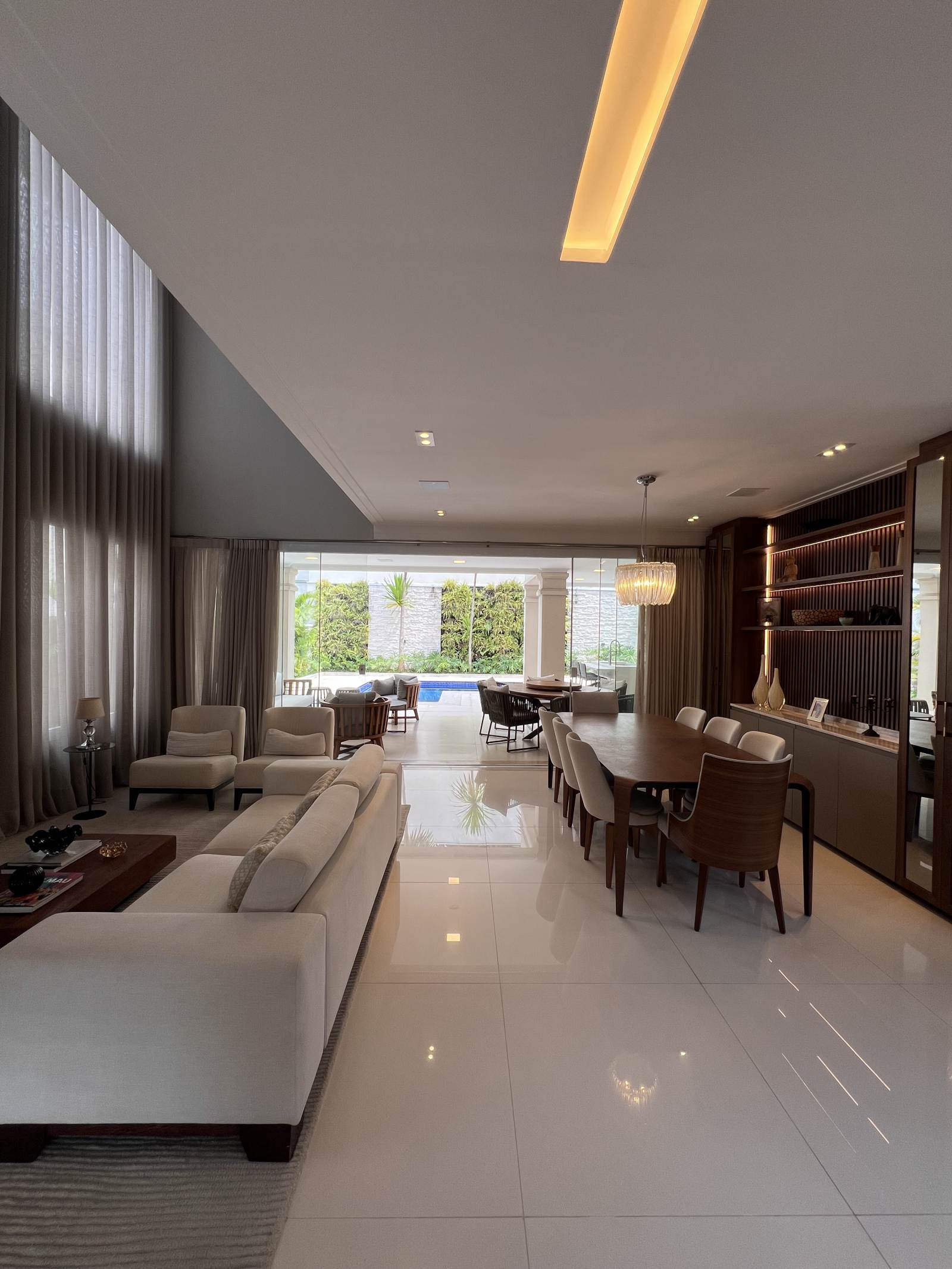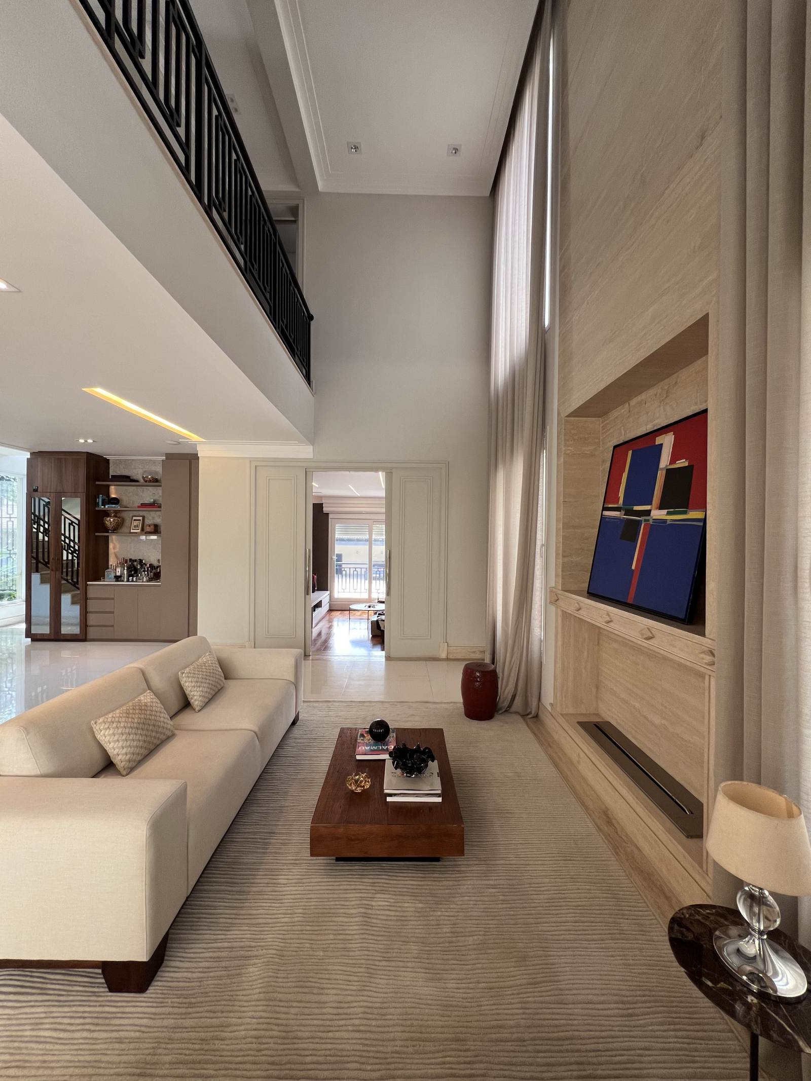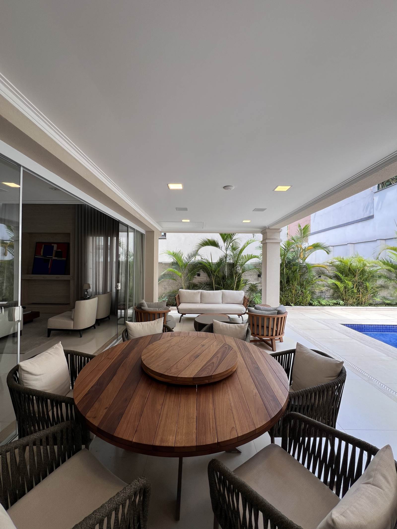 Linda casa com 420m2 de terreno e 442m2 de área construída, 4 amplas suítes, living para 3 ambientes, piscina aquecida com prainha, área gourmet integrando os ambientes, pé direito duplo, sala íntima, escritório, lareira, lavabo, suíte máster com dois closet, ar condicionado, dependência de funcionários e 6 vagas de garagem.